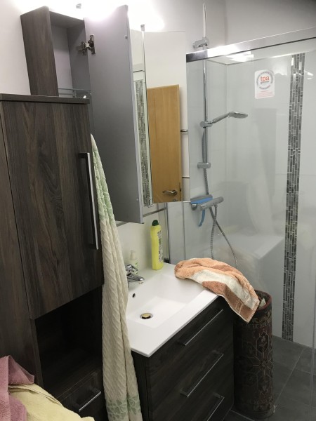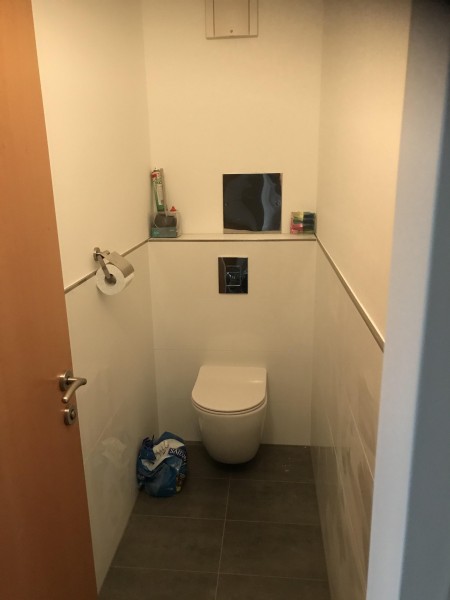 Das Bad mit Dusche, Waschtisch und Waschmaschinenanschluß und das separate WC sind ebenfalls vom Vorraum aus zu erreichen.