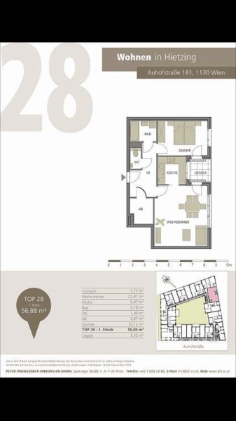 Die Wohnung hat ein schönes, helles Wohnzimmer mit Ausgang auf die Loggia, eine extra abgetrennte Küche (Tischler Einbauküche mit Neff Markengeräten), Bad und WC getrennt, einen großen Abstellraum (auch als begehbare Garderobe nutzbar) und ein schönes Schlafzimmer mit einem weiteren Ausgang auf die Loggia.