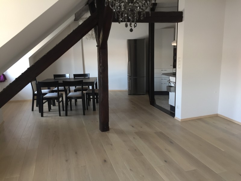 Ideal für Studenten, Ärzte, LKH Bedienstete... Pärchen. Die Wohnung befindet sich in einem eleganten, renovierten und denkmalgeschüzten Jugendstilhaus. Tolle Aussicht auf den Leonhardbach, Reiterkasserne und den Ruckerlberg, Plabutsch und Schöckl. Die ca.71 Qm Wohnung befindet sich im obersten Stock ohne Lift und verfügt über ein großes Schlaf/Arbeitszimmer (ca.25 Qm), einen großzügigen Wohn-Essraum mit offener Küche (ca.38 Qm), ein geräumiges elegantes Bad mit Abstellraum, extra WC. Außerdem kann man den darüberliegenden Dachboden als Lagerraum nutzen. Beim Ausbau wurden liebevoll die alten Holzpfeiler des Dachstuhles erhalten und hervorgehoben. Ausstattung: Küche mit Geschirrspühler und Warmwasserboiler der Klasse A++, Sat-Anschluss, Telekom, Beleuchtung,..möglicher Anschluss eines Schwedenofens. Verfügbar ab Mitte April! Heizung: Energie-sparende komfortable Infrarot-Marmorplatten Wandheizung.