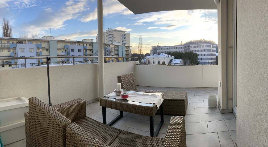 Aber das Beste ist der große 20m2 Balkon (Süd-West), wo den ganzen Tag, von in der Früh bis abends, die Sonne scheint. Die Aussicht zum Schlossberg und zum Plabutsch ladet ein, ständig ein Getränk auf dem Balkon zu genießen und der Sonne zu baden. Ich kann nicht sagen, wie viele Abende ich den Sonnenuntergang genossen habe. Traumhaft!