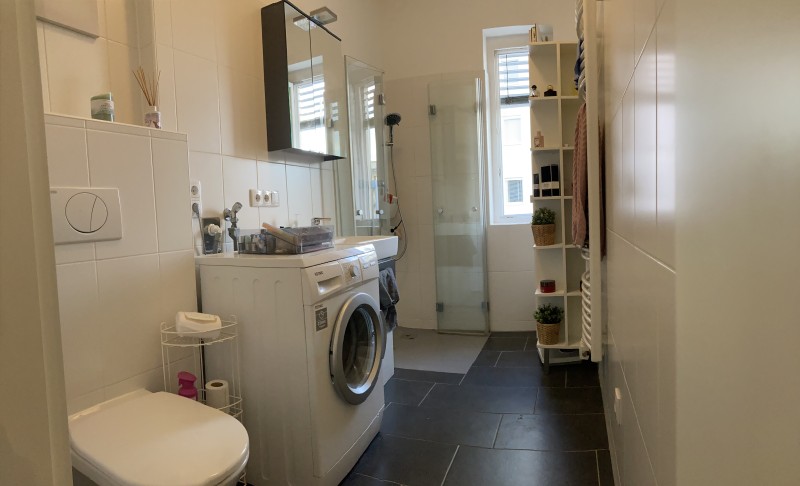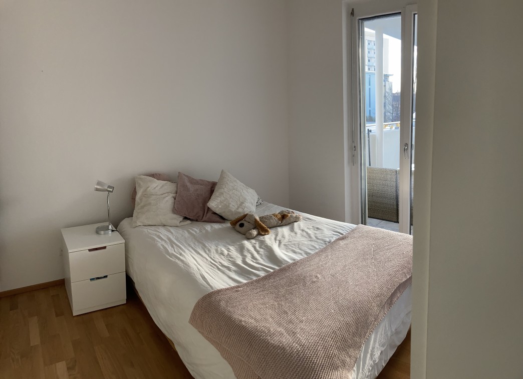 Wie ihr auf den Fotos sehen könnt, ist die Wohnung sehr neu. Die rote Küche und die Glastür machen die Wohnung sehr heimelig und modern. Sie hat ein großes Kellerabteil und auch einen Tiefgaragenplatz, der im Preis inkludiert ist. Natürlich gibt es auch Stellplätze fürs Fahrrad!