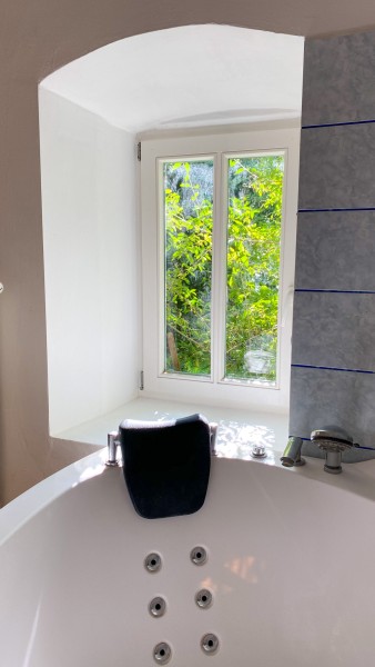 1 großzügiges Gewölbe-Bad mit Wellness-Badewanne