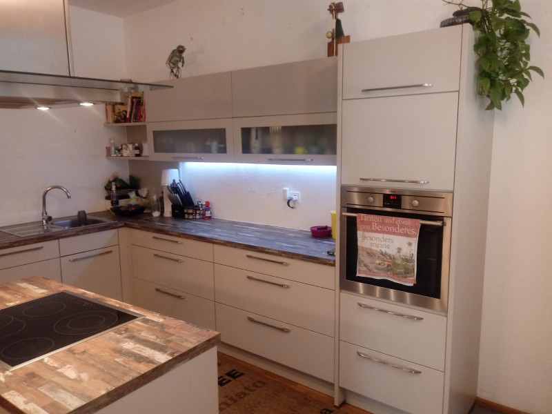 - großzügige Wohnküche mit Blick in den südseitigen Garten und angeschlossenen Abstellraum