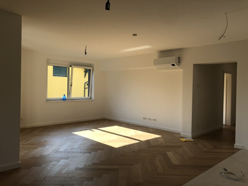 Das große 41m2 Wohnesszimmer schaut richtig Süd-Westen und hat Zugang zum Balkon.