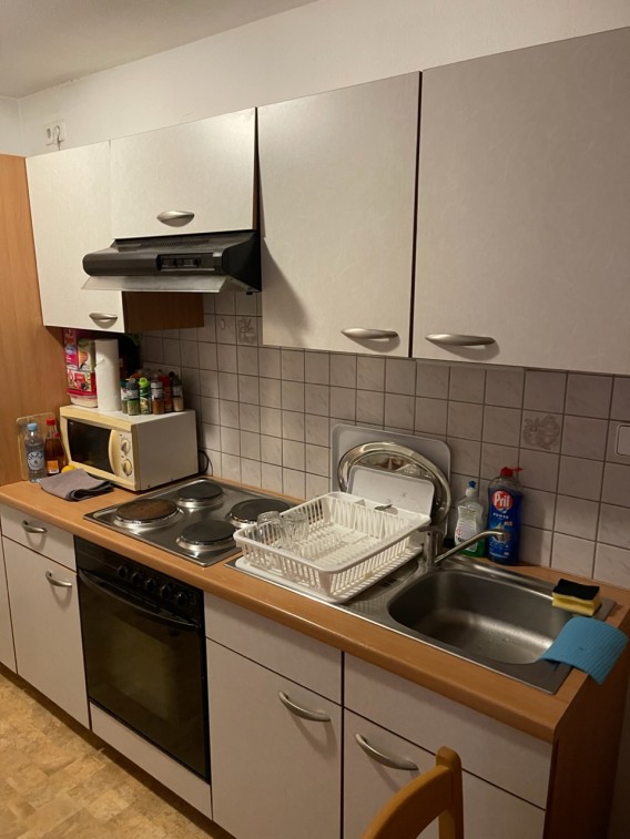 Die Wohnung ist möbliert und hat eine Parkmöglichkeit (kein zugewiesener Parkplatz, ist aber zu 99% immer frei zum Parken).