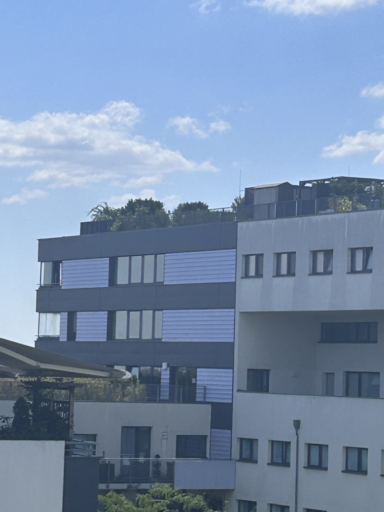 Die Wohnung ist 82 m2 groß inkl. geschlossener Loggia (Wintergarten). Das Highlight ein eigener Dachgarten mit 107,56 m2 inkl. Terrasse.