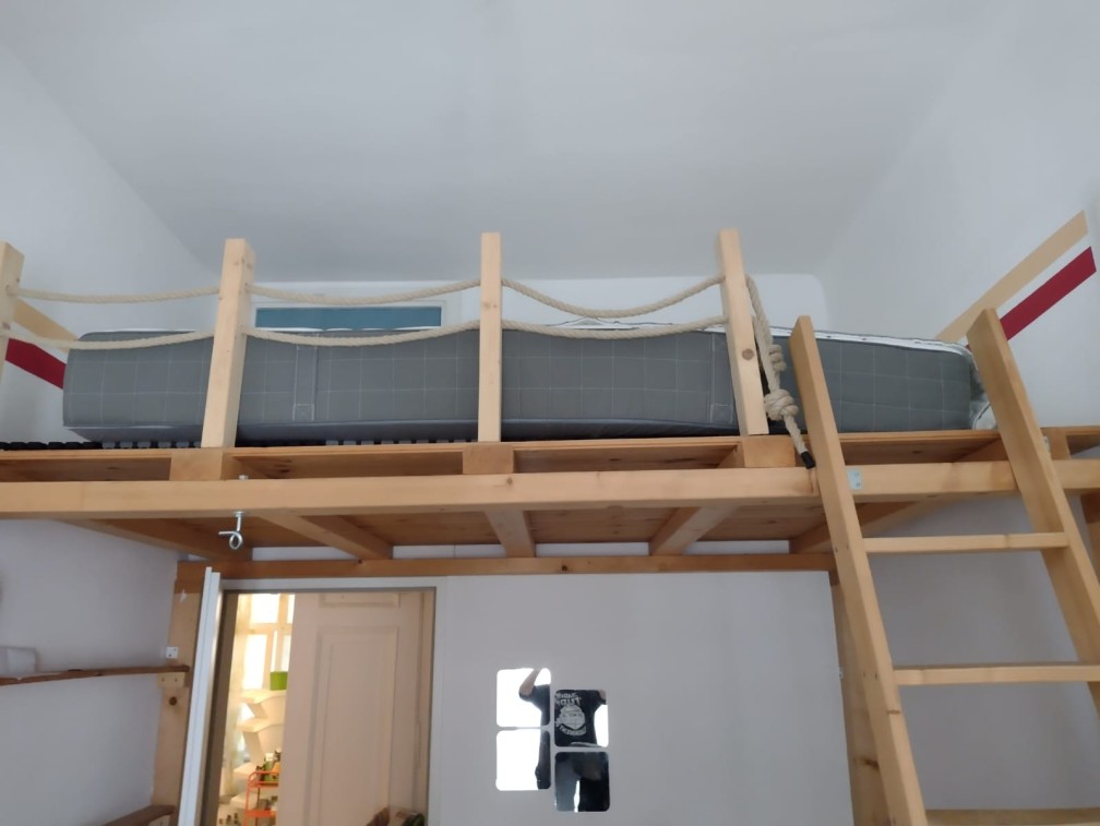 In Graz steht ein charmantes 12m²-Zimmer in einer WG zur Verfügung. Dank eines cleveren Hochbetts bietet es etwa 20m² Nutzfläche, und die Raumhöhe von ca. 210cm ermöglicht bequemes Stehen darunter. Die Wohnung liegt abseits des Innenstadt-Lärms, nur das gegenüberliegende Café ist bei geöffneten Fenstern hörbar.