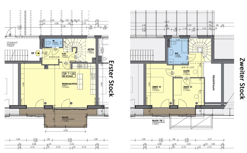 Zwei Abstellräume, WC in beiden Stockwerken, Badezimmer; Balkone in beiden Stockwerken, zusätzlich große überdachte Balkonterrasse vor dem Wohnzimmer.