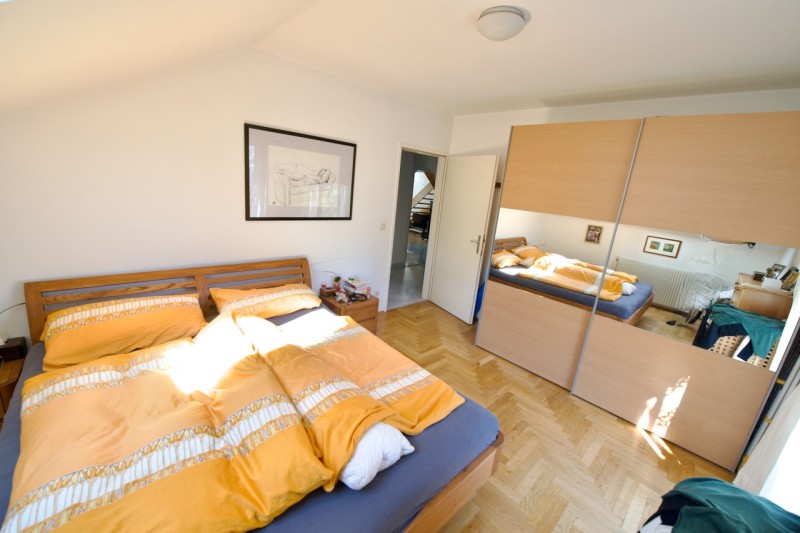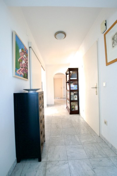 Zwei weitere Zimmer im hinteren Bereich vervollständigen die Wohnung. Eines der Zimmer verfügt über einen südwärts gerichteten Balkon, das andere bietet direkten Zugang zu einem kleinen, romantischen und vor fremden Blicke geschützten Eigengarten.