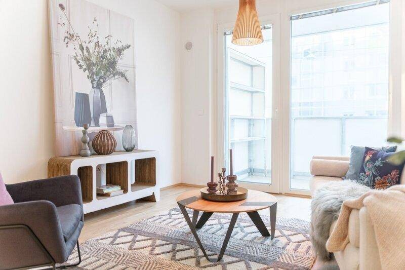 Die Fotos der Wohnungen stellen eine Musterwohnung mittels Homestsaging dar. Raumaufteilung sowie abgebildete Freiflächen können abweichen.