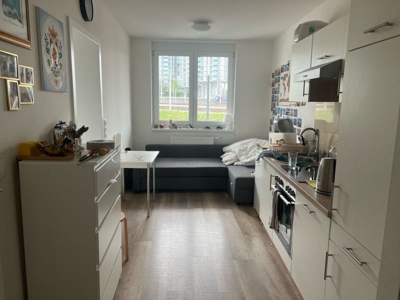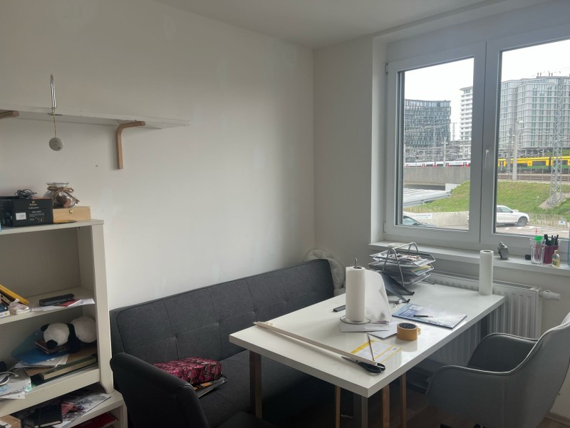 Es ist eine kleine 35m2 Wohnung mit einer Wohnküche und einem Arbeitszimmer. Es gibt kein Bett, aber 2 Schlafsofas.
