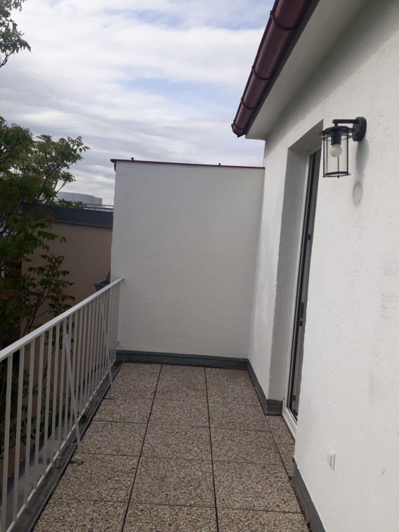 Generalsanierte Dachgeschoßwohnung im 7. Stock mit Fernblick und 8m2 Dachterrasse in ruhigen Innenhof, 2 kleine, 2 größere Zimmer mit Parkettboden, Küchenzeile und Badezimmer verfliest, Infrarotheizung und Gasalternative, Kellerabteil
