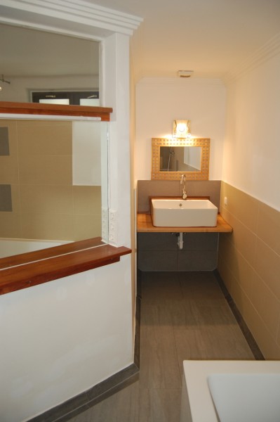 Die helle Wohnung im Grünen besticht außerderm durch ihre Nachhaltigkeit: Eine Pellets – und Solaranlage sind Wärmelieferanten für Heizung und Warmwasser, alle Zimmer sind gut isoliert und mit Holz verkleidet, was beste Eneriewerte garantiert.