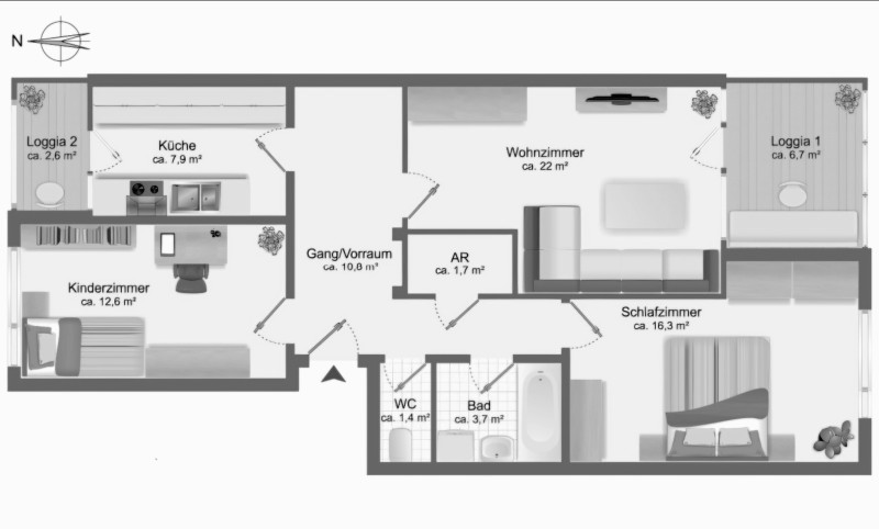 84m2 große 3.5- Zimmerwohnung mit Loggia im 1. OG in Lienz