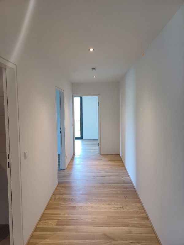 Zum 01.01.2025 kann die Wohnung, die in der zweiten Etage liegt, bezogen werden. Die Wohnung verfügt über einen Wohn- Essbereich mit Einbauküche, 2 Schlafzimmer, Bad, WC, Abstellraum, Gang, elektrische Beschattung, integrierte Beleuchtung, ca. 12 m Loggia. Die Wohnung lässt sich bequem über einen Aufzug erreichen und ist barrierefrei zugänglich. Durch den zur Wohnung gehörenden Tiefgaragenplatz sind Sie vor Regen Schnee geschützt. Auch ein Kellerraum ist vorhanden und bietet weiteren Stauraum.