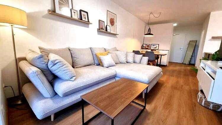 Luxus Neubauwohnung mit Alpenblick, 49m², 3. Etage, mit Lift, 1 Balkon, 1 Tiefgaragenstellplatz, Öffentliche Parkplätze in der Nähe. Inkl. Heizung, Strom, Wasser, Internet, TV (inkl. Anschluss und Abo). Energieeffizienzklasse A+, Baujahr Gebäude 2024, ...