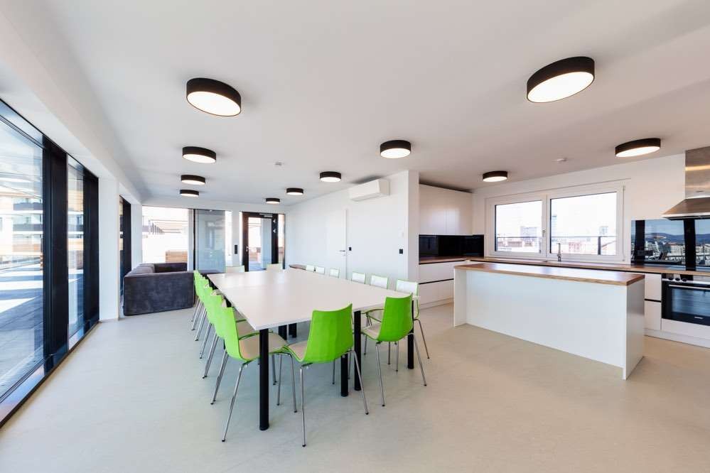 Gemeinschaftsräume, Arbeitsplätze, Sauna stehen im Haus nach Verbrauch von Freistunden gegen geringe Gebühr zur Verfügung.