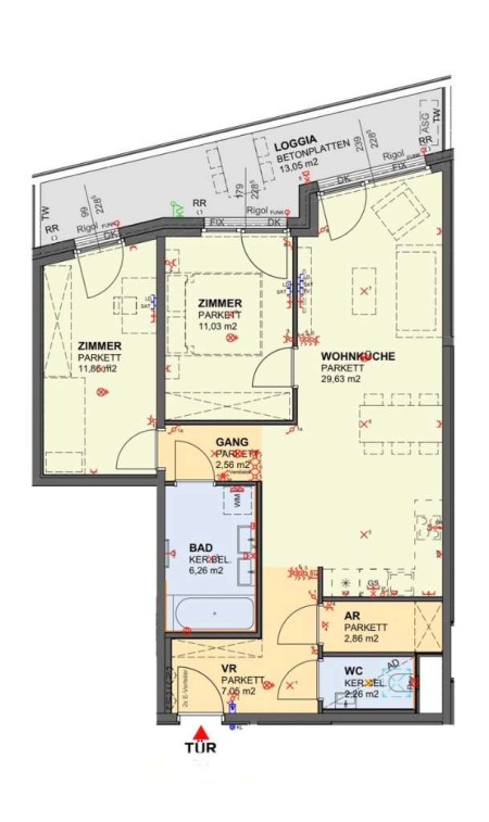 2 Schlafzimmer mit 1 großen Wohnküche, 13m2 Loggia und Parkplatz