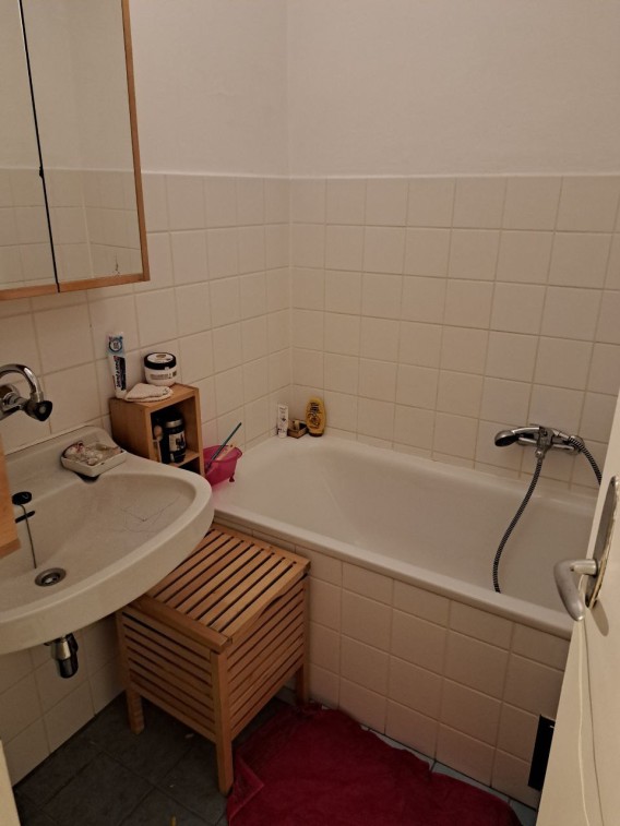 Vorraum, Wohnschlafzimmer mit Ausgang zum Balkon, separate Küche mit Küchenzeile samt Geräten (außer Kühlschrank ) und Essplatzmöglichkeit, Bad mit Wanne, separate Toilette.