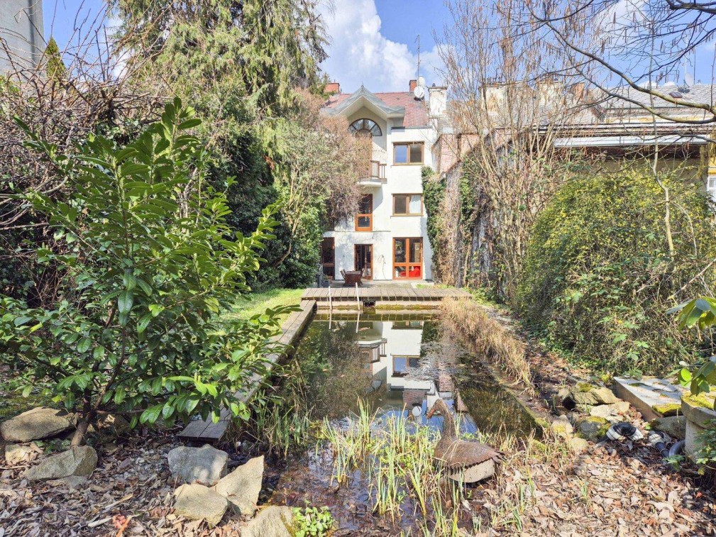 Das elegante Townhouse auf einem sonnigen Grundstück von rund 556 m² besticht durch seine helle, offene Architektur und eine durchdachte Raumaufteilung über mehrere Ebenen. Die großzügige Wohnfläche von ca. 350 m² verteilt sich auf:Gartenetage: Einladendes Entree, stilvoller Wohnsalon mit offenem Essbereich und Küche – ideal für das Familienleben und Gästeempfang.1. Galerieebene: Drei Schlafzimmer, ein Badezimmer sowie flexible und großzügige Flächen für Wohn- oder Arbeitsbereiche.Dachgeschoss: Zwei weitere Schlafzimmer, ein modernes Badezimmer sowie eine begehbare Garderobe – perfekt als private Rückzugsebene.Der liebevoll gestaltete Garten mit eigenem Badeteich bietet Erholung pur – ein privates Paradies mitten in der Stadt.