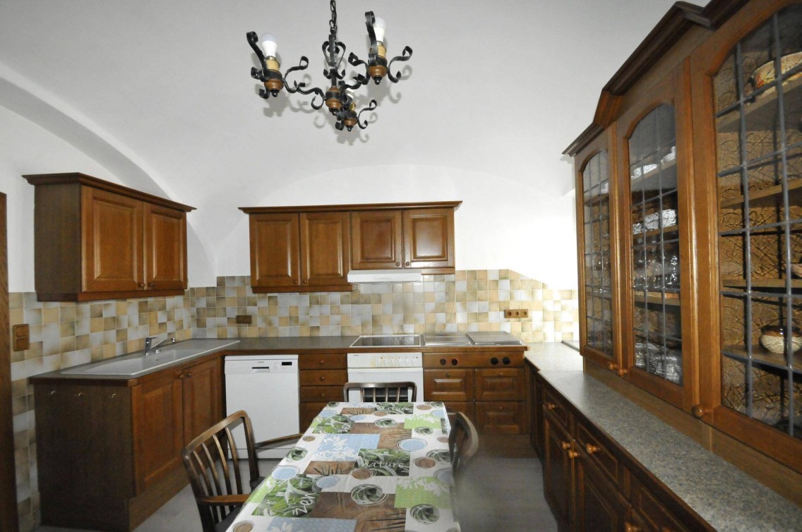Ausstattung: Möbliert ist die Wohnung derzeit mit einem Küchenverbau samt E-Geräten; Weiters vorhanden einzelne Einrichtungsgegenstände in einem gepflegten adäquaten Altbaustil. Das geräumige Badezimmer ist mit Waschtisch samt Spiegel, Badewanne und Toilette ausgestattet. Ein Waschmaschinenanschluss ist vorhanden. Im Wohnzimmer ist ein gepflegter Intarsien-Parkett verlegt. Im Innenhof steht ein PKW-Freistellplatz zu Verfügung und wird bei Bedarf mitvermietet. Die Wohnung wird überwiegend mittels einer Ölheizung beheizt (Radiatoren) und in der Wohnung befindet sich überdies ein schöner Kachelofen.