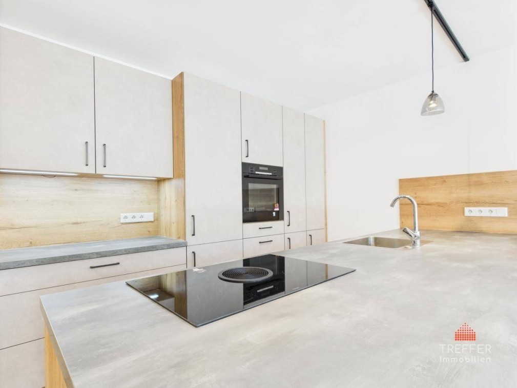 Im Erdgeschoss erwartet Sie ein großzügiger Wohn- und Essbereich mit offener Küche, der durch große Fensterflächen viel Tageslicht erhält und direkten Zugang zur sonnigen Terrasse bietet. Ein praktischer Abstellraum, ein separates Zimmer – ideal als Büro oder Gästezimmer –, ein Gäste-WC sowie ein einladender Vorraum mit Platz für eine Garderobe runden das Raumangebot auf dieser Ebene ab.