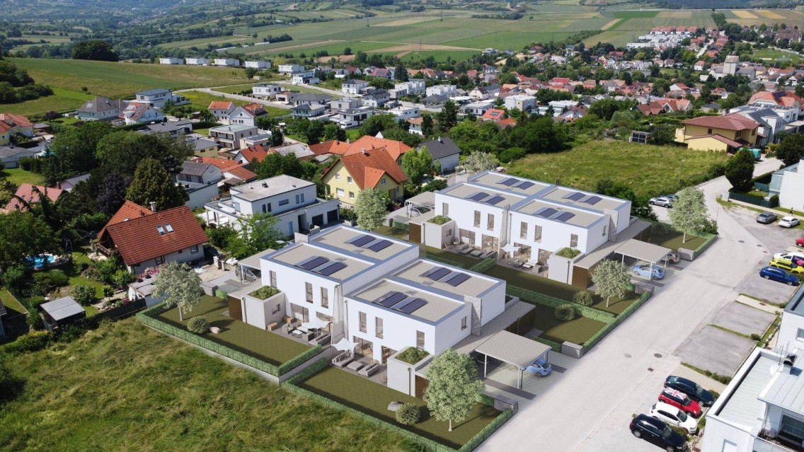 Alle Gebäude verfügen über eine hochwärmegedämmte Gebäudehülle nach modernsten Standards. Die Kombination einer effizienten Erdwärmepumpe mit ca. 120m - Tiefenbohrung und der eigenen Photovoltaikanlage schafft eine unabhängige und nachhaltige Heizungslösung. Abgeschlossen wird das Energiekonzept mit einer Betonkernaktivierung, wobei die Decke als Heizung im Winter und als Kühlung im Sommer genutzt wird. (Klimaanlage)Ihr neues ZuhauseDie Einheiten haben jeweils eine Wohnfläche von 113 m² und einen Eigengarten von 141m². Entspannen Sie mit Ihrer Familie und Freunden auf der 24 m² Terrasse oder Ihrem eigenen Garten.Ihr neues Zuhause betreten Sie durch einen geräumigen Vorraum mit ausreichend Platz für Garderobe sowie angeschlossenem Gäste WC. Vom Vorraum aus gelangen Sie sowohl in den Hauswirtschaftsraum als auch in den ca. 35 m² großen Wohn-Essbereich. Hier befindet sich auch die hochwertige DAN-Küche inkl. Kücheninsel und Bosch Geräten!Im Obergeschoß befinden sich 3 Schlafräume mit großzügigem Elternschlafzimmer, ein extra WC und ein helles Badezimmer mit Fenster, Badewanne, Dusche und bereits alle Badezimmerschränke.