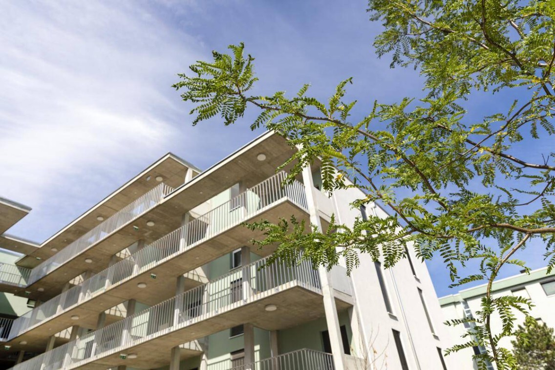 Die Wohnhausanlage bietet ein innovatives Energiekonzept mit Wärmepumpe und Photovoltaikanlage am Dach, eine Tiefgarage mit 133 Stellplätzen, zahlreiche Fahrradabstellmöglichkeiten sowie praktische Paketboxen.