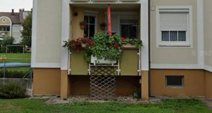 Die Hochparterre-Wohnung verfügt über einen Vorraum, Abstellraum, zwei Kinderzimmer, ein Schlafzimmer, ein Wohnzimmer mit Zugang zu einer Loggia als auch einer Küche, einem Badezimmer und einer Toilette.
