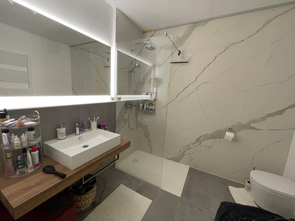 Ein Waschtrockner steht in der Wohnung zur Verfügung