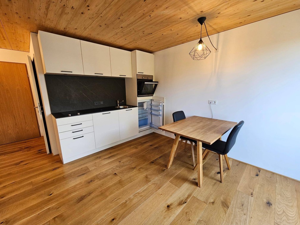 Die Wohnung ist mit allem ausgestattet, was du für den Alltag benötigst: Garderobe, Küche, Bett, Esstisch mit Stühlen, Sessel und ein geräumiger Kleiderschrank sorgen für Komfort und Funktionalität.
