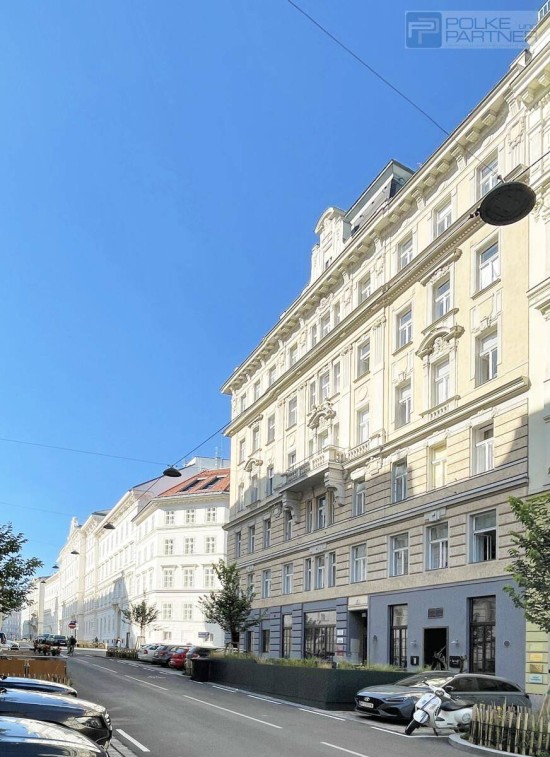 Gelegen im 4. Stock eines repräsentativen Stilaltbaus, empfängt das Apartment in einem geräumigen Vorraum, der - verbunden mit dem Flur - nahezu alle Räumlichkeiten der insgesamt 161qm großen Wohnung getrennt erschließt.