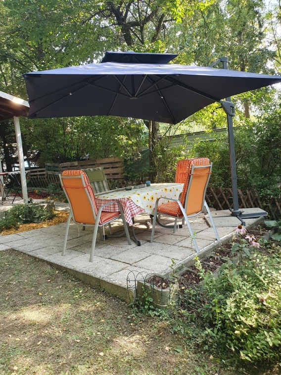 Wohnwagen mit Vorbau auf Pachtgrundstück