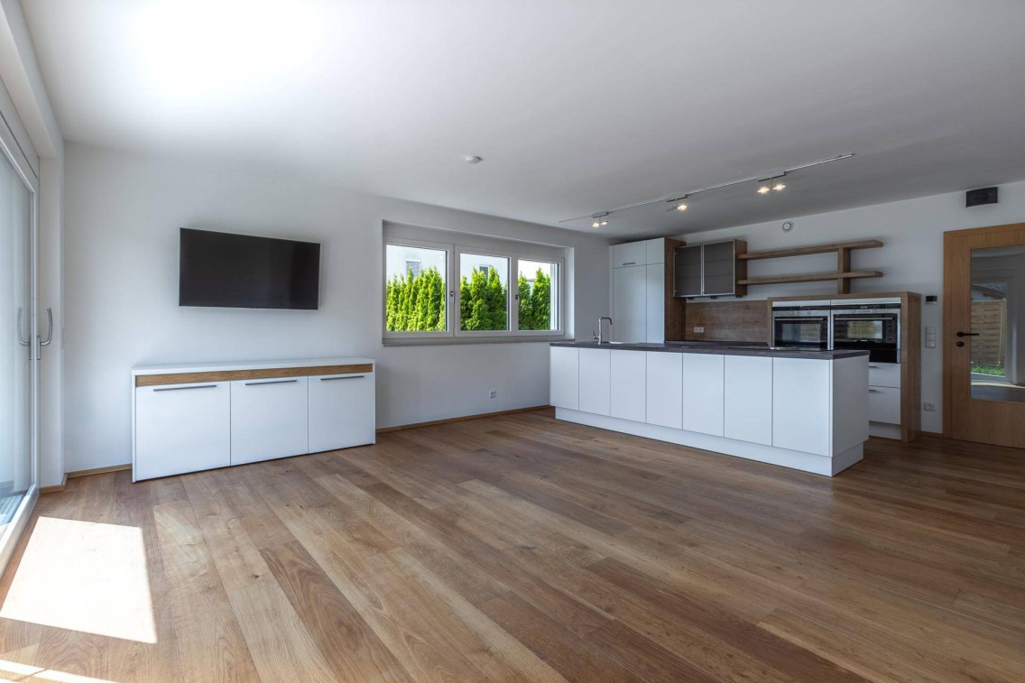 Der Wohnbereich richtet sich südlich aus und bietet einen direkten Zugang auf die Terrasse und den dazugehörigen Gartenanteil, welcher die gesamte Wohnung umgibt. Durch großzügige Fensterfronten gelangt viel natürliches Licht in die Wohnung, was für eine tolle Atmosphäre sorgt.