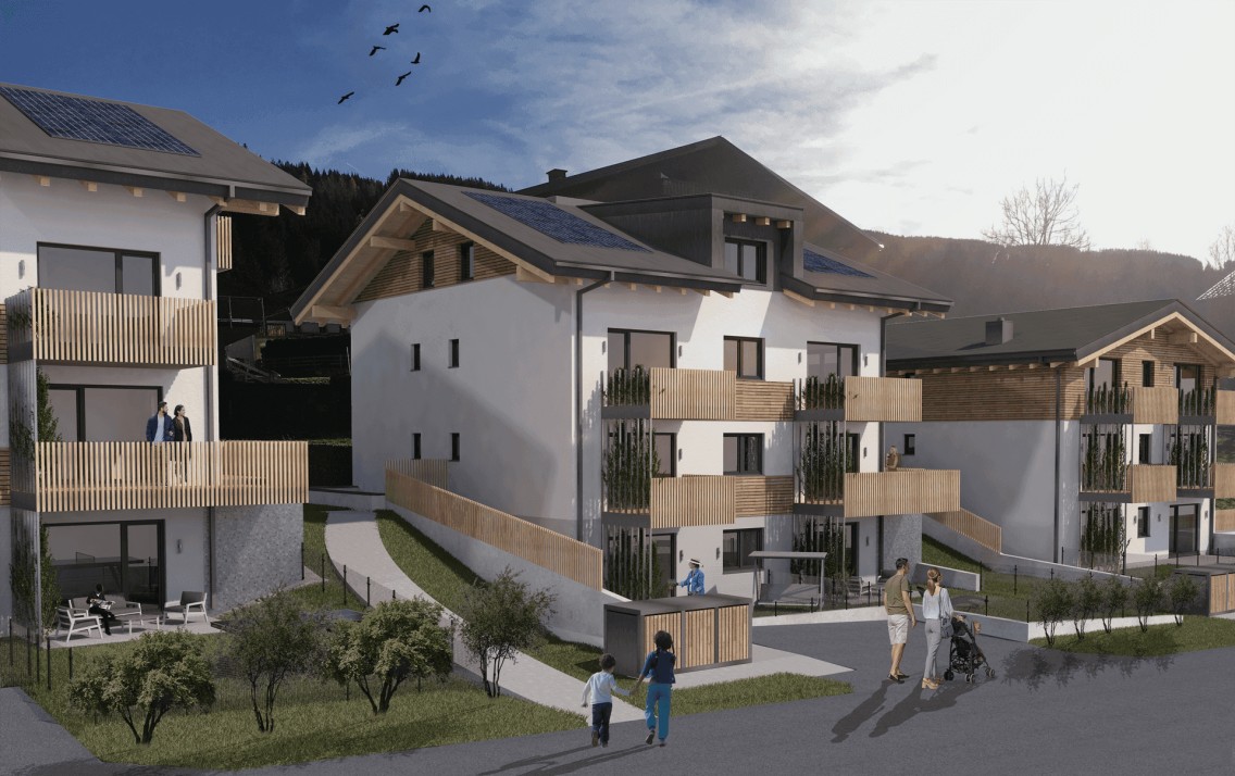 Diese wunderschöne Wohnung liegt im 2.Stock eines neuerbauten Massivholzauses der Fa. SIGES.