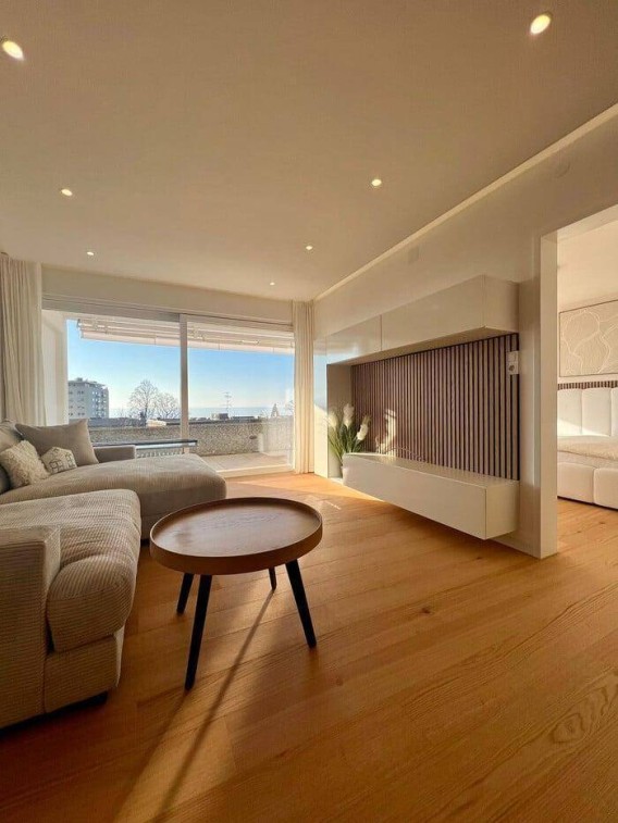 Die Wohnung wurde gerade komplett saniert und möbliert. Neues Bad, neue Holzfenster mit 3-fach Isolierverglasung, neue Küche mit Kochinsel und integriertem Dunstabzug, neue geölte Eichendiele, Lehmverputzte Wände usw.