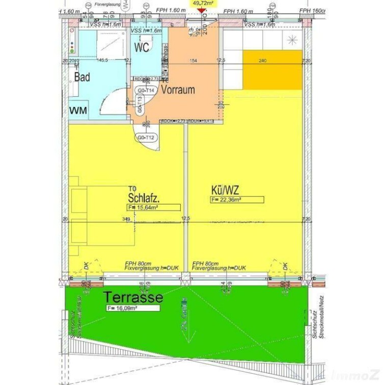 Die sonnige Terrassenwohnung mit Südausrichtung besteht aus Diele, Wohnraum mit offener Küche, Schlafzimmer, Bad und WC je mit Fenster sowie einer überdachten Süd-Terrasse, Kellerabteil und einem Tiefgaragenstellplatz.