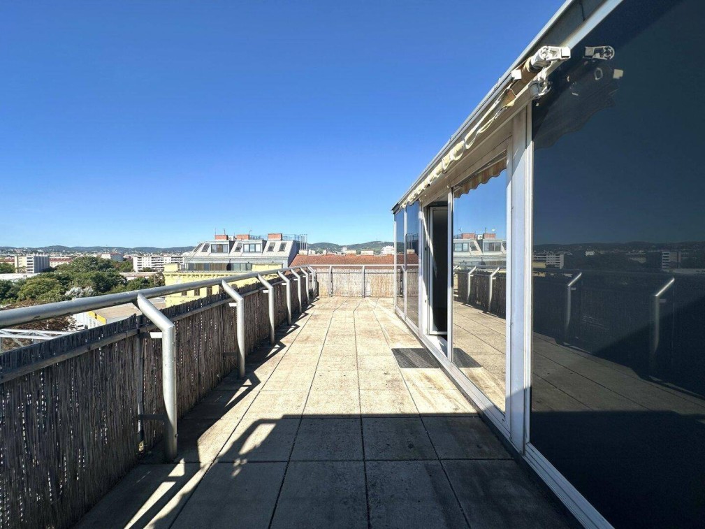 Dachgeschoß ohne Schrägen: Singlehit mit großer Terrasse und Traumblick, Wintergarten und Abstellraum | U6 Dresdner Straße