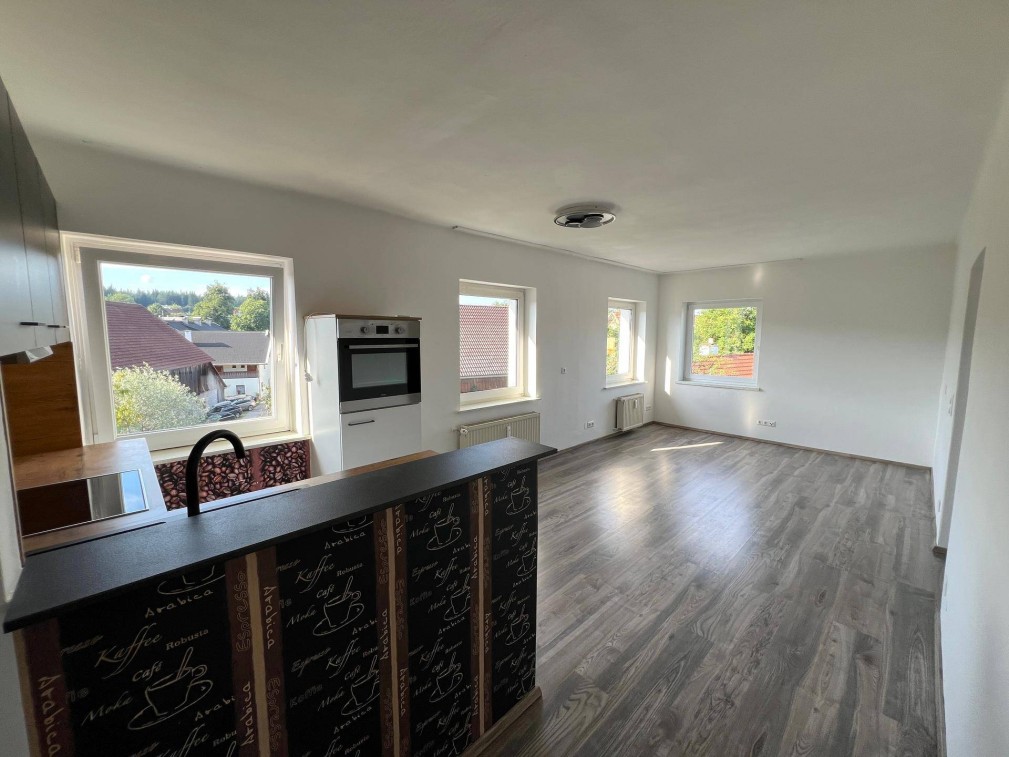 Offener Wohn- und Essbereich mit moderner Einbauküche