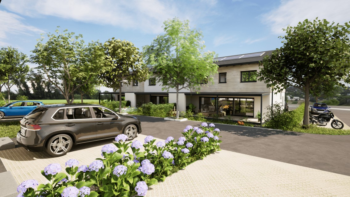 Alle Häuser sind südlich ausgerichtet und haben eine überdachte Terrasse sowie einen Garten. Die Reihenhäuser sind je mit einer Erdwärmepumpe und Photovoltaik, sowie mit einer intelligenten Gebäudeautomatisierung und Smart Homes – Loxone, ausgestattet.