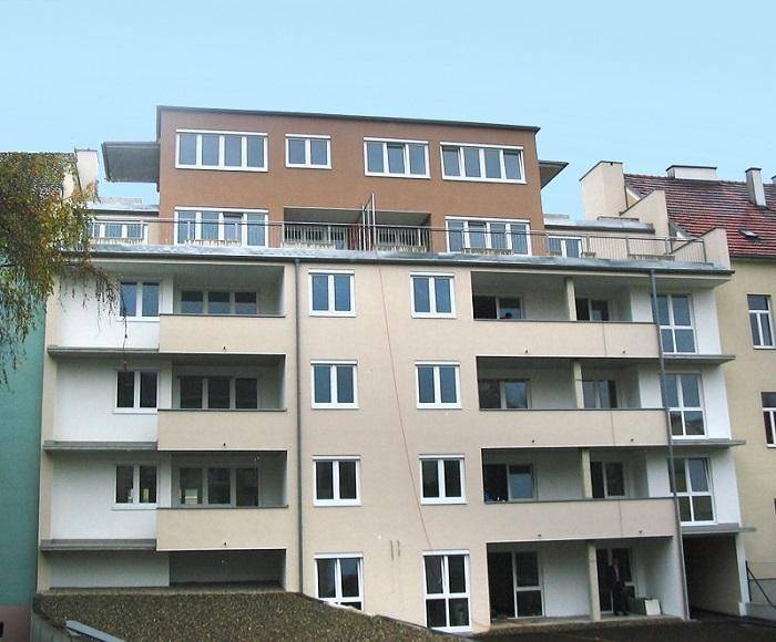 Die 2-Zimmer-Wohnung befindet sich im 4. Obergeschoss mit Lift und verfügt über einen Wohn-/Ess-/Kochbereich, 1 Schlafzimmer, Badezimmer, WC sowie über einen Vorraum und eine Abstellnische. Zusätzlich bieten 2 Dachterrassen inkl. Loggia (insgsamt 41,5 m²) Platz für Ihren individuellen Freiraum und laden zum Verweilen ein. Weiters verfügt die Wohnung über ein Kellerabteil, welches zusätzlichen Stauraum bietet, und auch ein Tiefgaragenplatz ist bereits in der Miete inkludiert.
