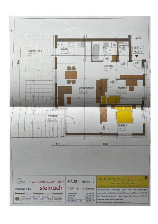 Zur Vermietung steht eine zentral gelegene, lichtdurchflutete 3,5-Zimmer Wohnung mit 140 m² Garten, 20 m² Terrasse, einem Kellerabteil und Tiefgaragenstellplatz in Steinach am Brenner beim Gemeinderathaus. Mit einer Wohnfläche von ca. 80 m² bietet die Wohnung modernen Wohnkomfort und genügend Platz für Familien oder Paare.Die Wohnung ist eingeteilt inVorraumWCBadezimmer mit Badewanneoffene Küche mit dem EssbereichWohnbereich mit Zugang zur Terrasse und dem schönen GartenSchlafzimmer sowie Arbeits- oder KinderzimmerZusammen mit der Wohnung wird auch der Autoabstellplatz in der Tiefgarage vermietet. Zur allgemeinen Nutzung der Wohnanlage stehen Sportgeräteraum, Trockenraum, ein Kinderwagenraum unterkellert sowie ein Kinderspielplatz im Freien zur Verfügung.Der Vorraum verfügt über einen praktischen Garderobenschrank samt Wandspiegel. Die Einbauküche ist mit dem Einbaukühlschrank, Backofen und Geschirrspüler ausgestattet. Das Badezimmer ist vollständig möbliert, hat Badewanne, neuwertige Waschmaschine und den Trockner. In den Zimmern sind TV-Wandhalterungen und Gardinenstangen vorhanden. Die Fenster sind mit Außenjalousien und zusätzlich teilweise mit Plissees versehen. Im Garten befindet sich ein Gerätehaus mit dem Rasenmäher und sonstigem Gartenzubehör sowie ein Hochbeet.Der Bahnhof „Steinach in Tirol“ ist in nur 600 Metern, die Lifte der Talstation der Bergeralmbahn in Steinach am Brenner erreichen Sie nach 800 Meter entfernt. Bäckereien, Banken und Lebensmittelgeschäfte befinden sich ebenfalls in fußläufiger Nähe.Eckdaten im Überblick:Wohnfläche: ca. 80 m²Gartenfläche: 140 m²Terrasse: 20 m²Garagenabstellplatz vorhandenKellerabteil inkludiertLage: ZentrallageGesamtmiete inkl. Betriebskosten beläuft sich auf EUR 1.440,00 (Strom ist in den Betriebskosten nicht inkludiert und ist vom Mieter direkt zum Anmelden.)Es werden die Kosten für die Mietvertragserrichtung i.H.v. EUR 350,00 zzgl. 20% Umsatzsteuer anfallen, welche von der Mieterseite zu tragen sind.Wir freuen uns auf Ihre Anfragen!Noch nichts gefunden? Wir informieren Sie über geeignete Immobilienangebote noch vor allen anderen.