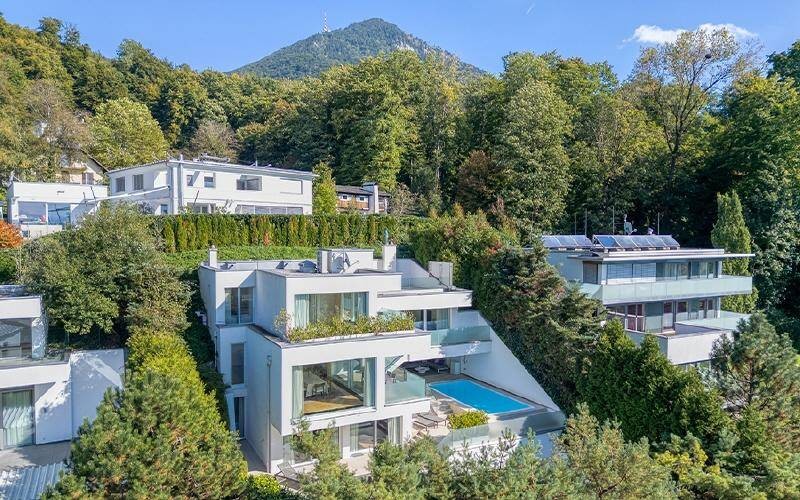 Am Fuße des Gaisbergs erwartet Sie diese moderne Designvilla, die mit unwiederbringlichen Ausblicken auf die Stadt Salzburg und die imposante Bergwelt begeistert. Absolutes Highlight ist der Festungsblick, der Sie beinahe von allen Räumen verzaubert.