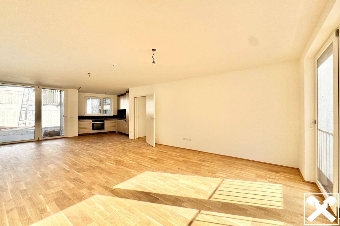 Die 4-Zimmer-Neubauwohnung in einem kleinen Mehrparteienhaus vermittelt ein Höchstmaß an Komfort und Wohnqualität.Über ein freundliches Stiegenhaus gelangt man in das Erdgeschoß, indem sich die einladende Wohnung befindet. Durch den geräumigen Vorraum und den Flur sind alle Räume zugänglich.Der helle und großzügig gestaltete Wohn-/Ess-/Kochbereich mit großflächigen und bodenbündigen Terrassentüren vermittelt ein traumhaftes Wohngefühl. Raffstores sorgen wiederum für Beschattung und ein behagliches Raumklima.Die großzügige Süd-West-Terrasse lädt zum gemütlichen Verweilen ein. Der vorgelagerte Garten darf mit genutzt werden.Die Wohnung verfügt außerdem über drei Schlafzimmer, ein modern gefliestes Badezimmer mit Fenster und Walk-in Dusche, eine separate Toilette und einen Abstellraum.Zusätzlichen Stauraum bietet ein großes Abteil im Keller. Des Weiteren sind zwei PKW-Stellplätze im Gesamtmietzins enthalten.Wir weisen auf das wirtschaftliche Naheverhältnis zum Abgeber hin.