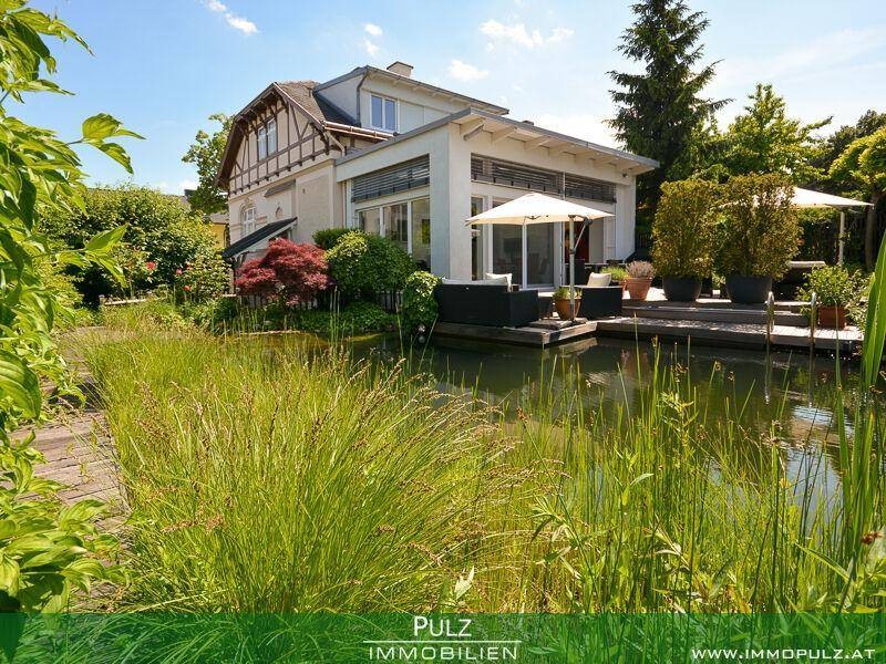 • gepflegter, gärtnerisch angelegter Garten mit Schwimmbiotop
