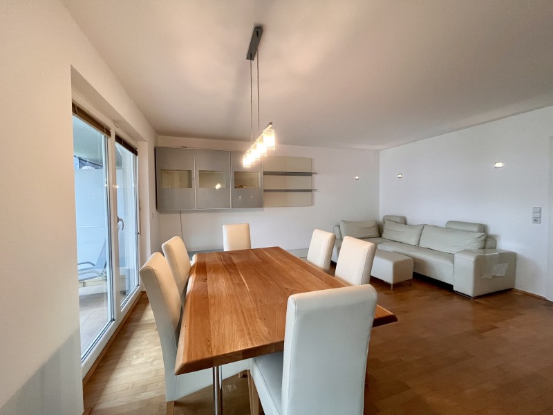 (Esstisch mit Stühlen, Ledercouch und Wohnzimmermöbel können bei Bedarf übernommen werden)
