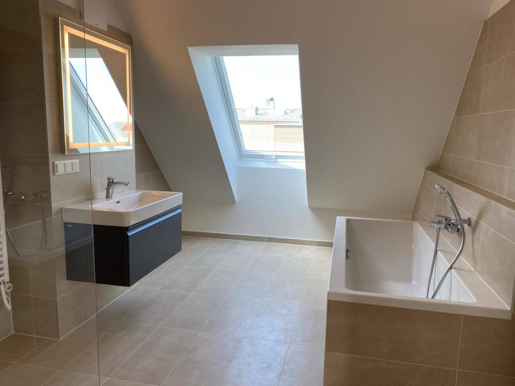 • Badezimmer mit moderner und hochwertiger Ausstattung inklusive breiter Walk-In-Dusche und Badewanne - Barrierefrei
