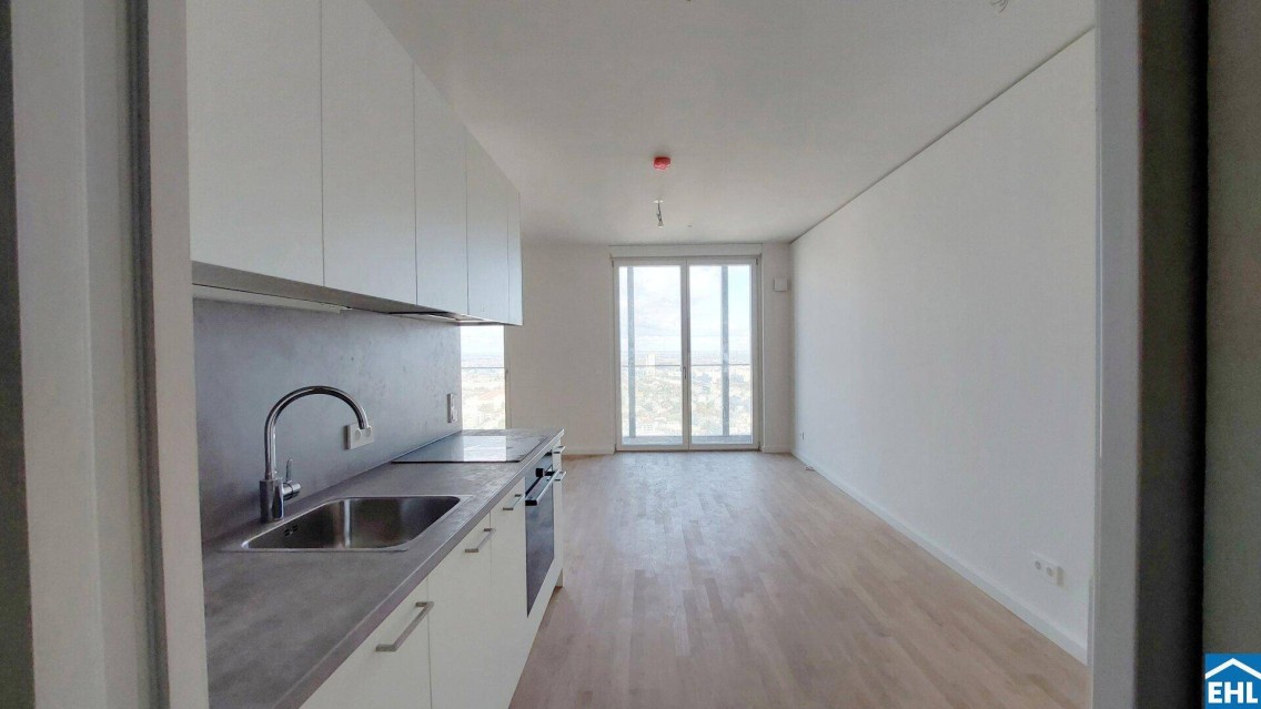 TOWER HOMES im Vienna Twentytwo - Erstbezugswohnungen bei der U1 - Rooftop-Pool, Fitnessraum & Saunabereich!In einzigartiger Lage, direkt bei der U1-Station Kagran und vis-à-vis vom Donau Zentrum, entsteht ein exklusiver, ca. 155m hoher Wohnturm mit 45 Etagen. Die insgesamt 347 Mietwohnungen bieten einen vielfältigen Wohnungsmix: von smart geschnittenen 1,5-Zimmer-Apartments ab ca. 38 m² über komfortable 2-Zimmer-Wohnungen bis hin zu großzügigen 3- und 4-Zimmerwohnungen mit bis zu ca. 80 m².Die Kombination aus moderner Architektur, weiten Glasfronten, hochwertiger Ausstattung und einem nachhaltigen, energieeffizienten Gebäudekonzept schafft ein urbanes Zuhause mit besonderem Wohnkomfort – ideal für Singles, Paare und Familien.Highlights von V2245 Etagen, ca. 155 m Höhe1,5- bis 4-Zimmer-Wohnungen mit optimalen GrundrissenErstklassige Allgemeinflächen:Rooftop-Pool mit großzügiger Terrassenlandschaft, Sitz- & LiegebereichenFitnessraum, Saunabereiche, WaschkücheJugendspielraum mit vorgelagertem KleinkinderspielplatzGemeinschaftsräume mit TerrasseFahrradraum inkl. Waschplatz & WerkbankHundewaschplatzEinlagerungsräume auf allen WohnetagenStellplätze können in der hauseigenen Tiefgarage um € 168,00 brutto angemietet werden.Eine detaillierte Übersicht anhand unseres Grundrissnavigators finden Sie hier!AusstattungDie Ausstattung überzeugt durch ein sorgfältig abgestimmtes, hochwertiges Konzept:Österreichisches Qualitätsparkett von WeitzerItalienisches Feinsteinzeug von MarazziMarken-Sanitärausstattung von Hansa, Villeroy & Boch, GeberitSicherheitstüren (WK3)Holz-Alu-Fenster mit innenliegendem SonnenschutzSmarte Gebäudetechnik - Heizen & Kühlen mittels Bauteilaktivierung/WärmepumpenGlasfaseranschluss (A1, Magenta)Video-GegensprechanlageLage & InfrastrukturDie Lage im 22. Bezirk erfüllt höchste Ansprüche an modernes, urbanes Wohnen:Direkt an der U1-Station Kagran – 11 Minuten bis zum StephansplatzGegenüber vom Donau Zentrum mit vielfältigen Shopping- & GastronomieangebotenWenige Minuten zur Alten Donau, Donauinsel und Donaupark – für Sport & FreizeitNähe zu internationalen Unternehmen, Bildungsinstitutionen und der UNO-CityBitte beachten Sie, dass es sich bei den Fotos lediglich um Musterfotos handelt!