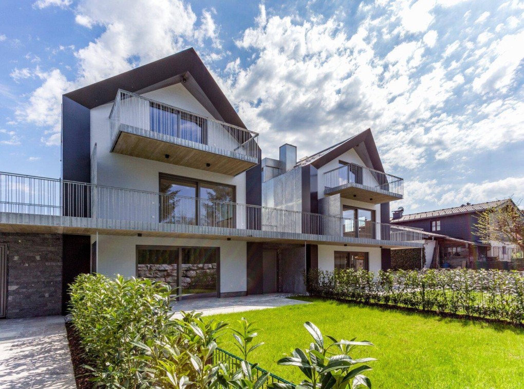 Wirtschaftsräumen und einem Bad mit Dusche, Wanne und Toilette – bieten ausreichend Platz für eine eigene Einheit oder können als Büro, Praxis etc. genutzt werden. Das Erdgeschoß kann von außen über den zentralen Eingang aber auch vom Untergeschoß über die innenliegende Treppe erreicht werden. Ein heller Wohnraum mit Zugang zu Terrasse und Garten, Toilette mit Waschtisch und eine offene Hochglanzküche mit Essbereich befinden sich auf dieser Ebene. In den beiden oberen Geschoßen sind jeweils zwei Zimmer, je eines davon mit West-Balkon, und ein Sanitärraum mit Toilette, Dusche und/oder Wanne untergebracht.Die hochwertige Ausstattung wird durch spezielle Bauelemente, wie die Sichtbetondecke im Untergeschoß oder die Säulen beim Stiegenaufgang optisch ergänzt. Auch von außen besticht das Reihenhaus durch die besondere Fassadenverkleidung und dem Satteldachkonstrukt mit giebelseitigem Vordach.AusstattungWeiße Hochglanzküche mit Stein-Arbeitsplatte3 moderne Badezimmer mit Waschtisch, Dusche und/oder Wanne, ToiletteEichen-Dielenböden, gebürstetFußbodenheizung, zusätzliche Sprossenheizkörper in den BädernWaschmaschinenanschlüsseKabel-TV- und Internet-Anschluss, Netzwerk-VerkabelungGegensprechanlage, AlarmanlageElektrischer SonnenschutzKaminanschluss vorhandenZentrale Versorgung für Heizung- und WarmwasserHeizwärmebedarf (HWB): 47 kWh/m²a, Gesamtenergieeffizienzfaktor: 0,8LageWohnen in Obertrum am See bedeutet Leben in der Natur. Nur 15 Fahrminuten von der Stadt Salzburg entfernt liegt die Marktgemeinde. Das Trumer Seenland mit seiner unberührten freien Natur ist ein wunderschönes Wohn- und ein beliebtes Erholungsgebiet. Vielfältige Sport-, Kultur- und Erlebnismöglichkeiten sorgen für eine hohe Lebensqualität. Obertrum ist ein Ort für alle jene, die warme Badeseen, schöne Landschaften, Sport und Kultur genießen möchten.Die drei modernen Reihenhäuser wurden 2017 errichtet und liegen am ruhigen, südlichen Ortsrand von Obertrum.Verschiedenste Einkaufsmöglichkeiten wie Supermärkte, diverse Fachmärkte und Nahversorger, Restaurants, Cafés sowie das Ortszentrum mit Schulen und Banken sind nur etwa 1 km entfernt.