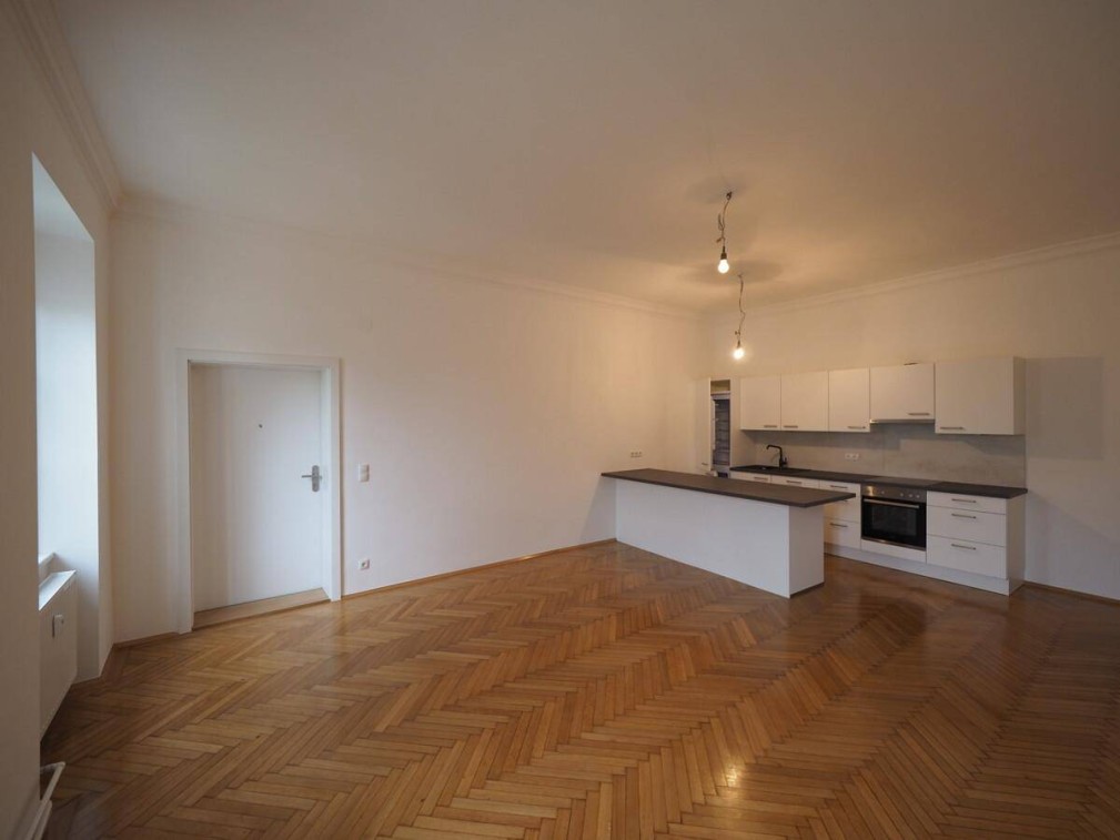 Schon beim Betreten der Wohnung gelangen Sie in ein großzügiges, lichtdurchflutetes Wohnzimmer mit offener Küche. Die Küche ist neuwertig und voll ausgestattet – bislang wurde sie vom Vormieter nicht genutzt, sodass Sie hier quasi einen Ersteinzug in eine moderne Küche genießen können.